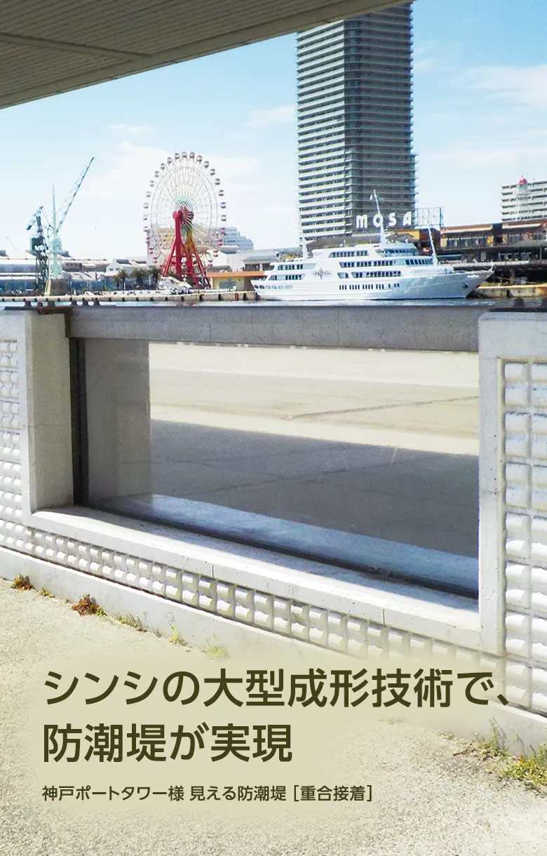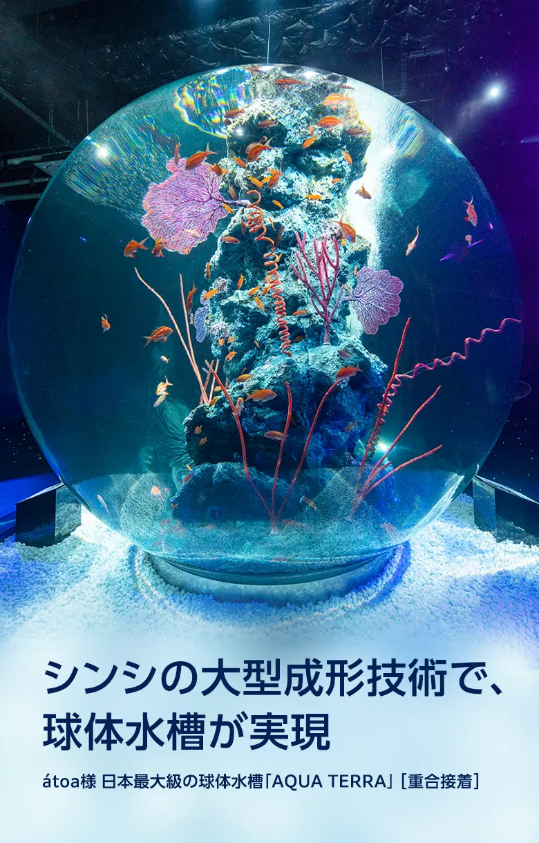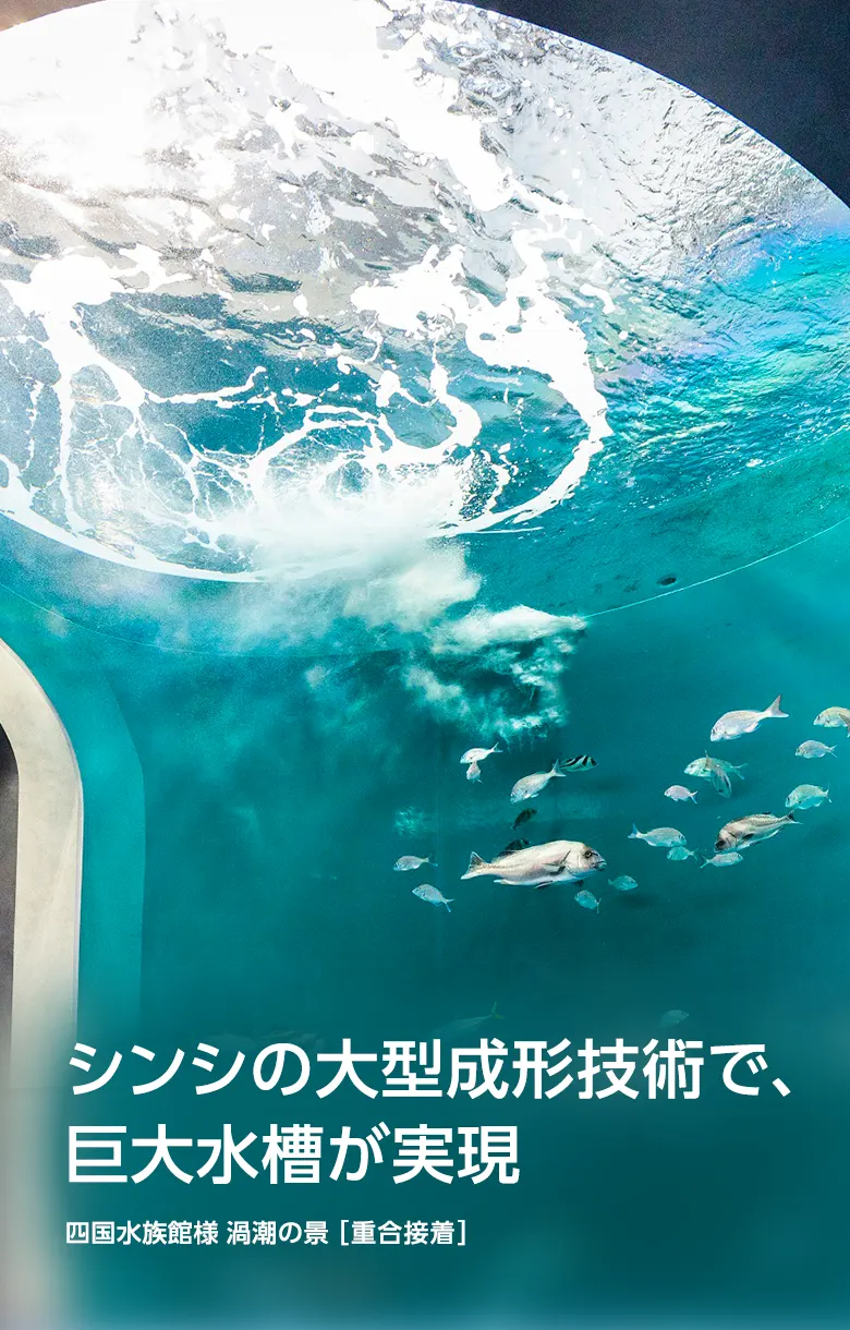 シンシでは、世界の水族館、医療機械のカバー、実験器具、海の防潮堤、乗り物のカバー、ビル・トンネルの建材、オブジェなどあらゆる製品を製作してきました。その中の一部をご紹介します。