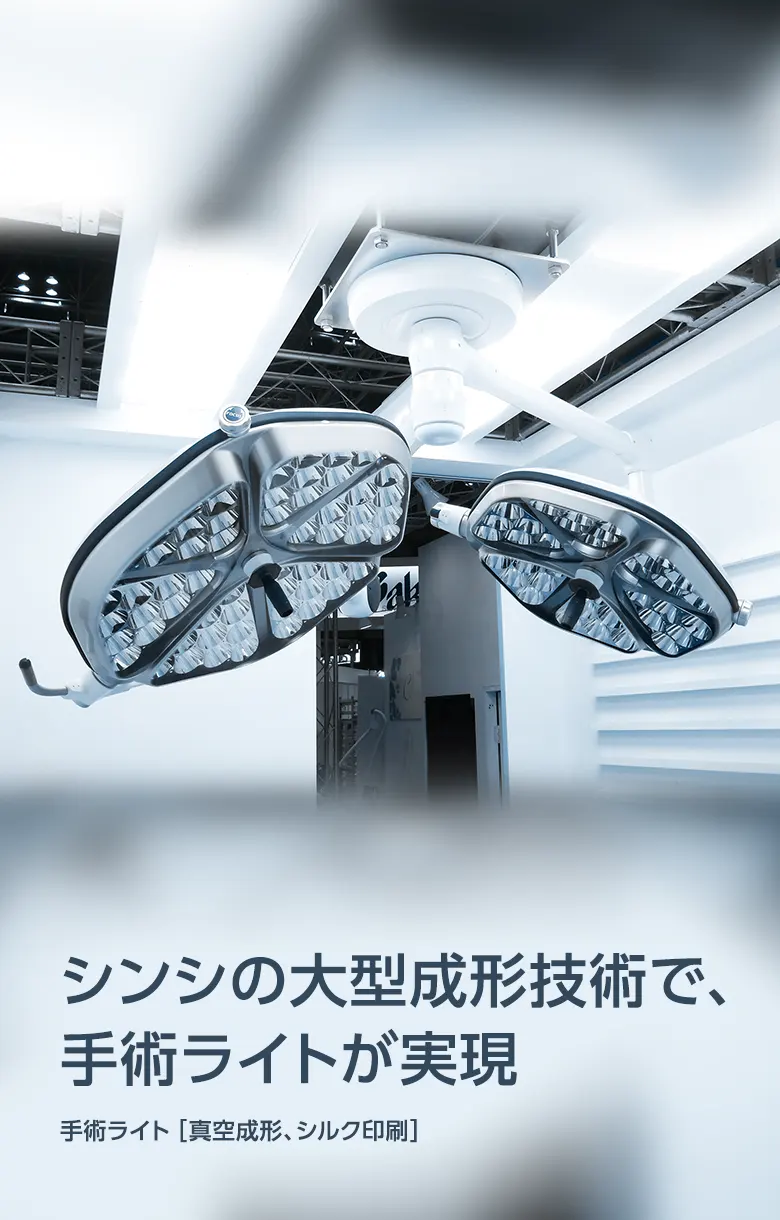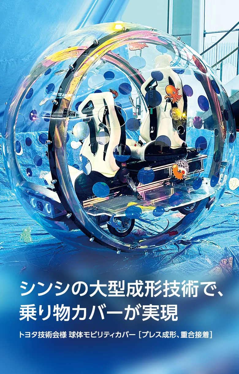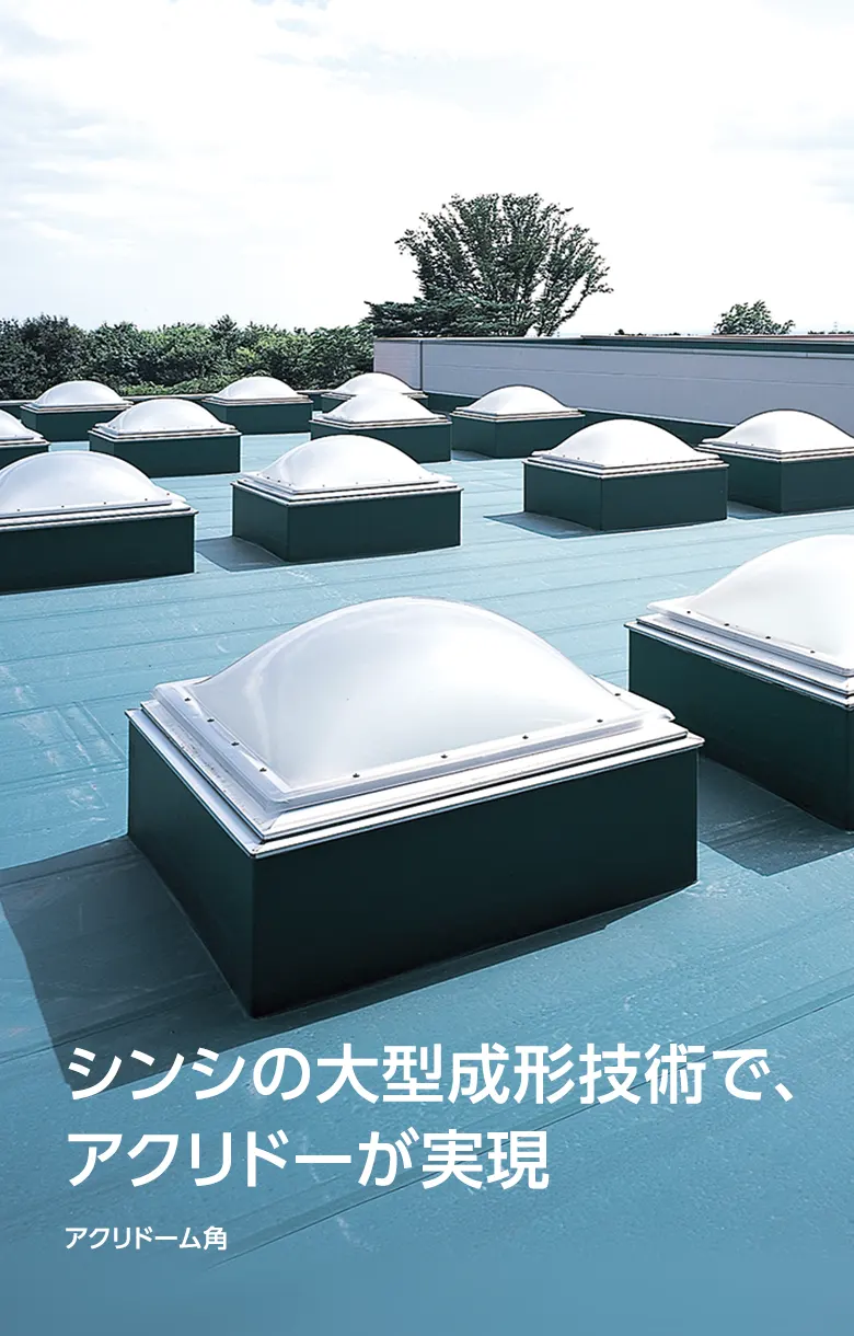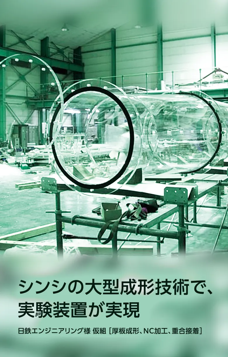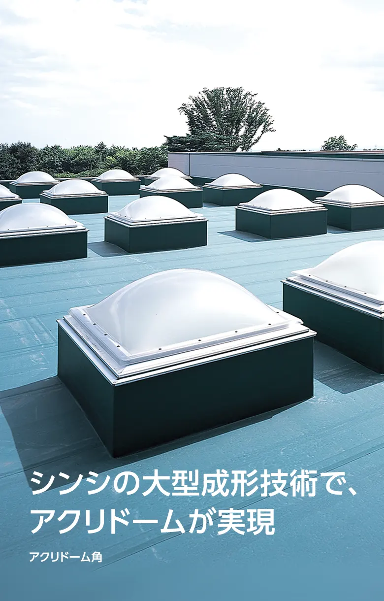 シンシの事業分野は、アクリル樹脂やプラスチックの大型成形技術を中心に、さまざまなシーンで役立てられています。
