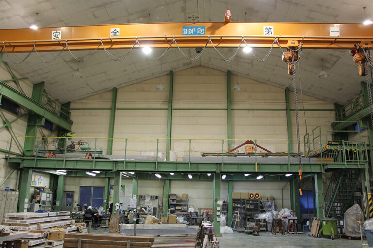この案件は、シンシにとっても大きな意味がありました。既存の工場でこれだけ大きな水槽を手掛けるのは難しかったため、水槽専用の工場を増設したのです。クレーン付きの大きなこの工場が、今のシンシの水槽づくりを支えています。